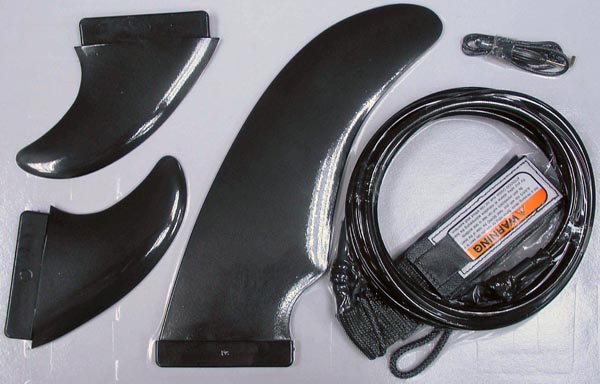 該套件包括一條腳帶和繩索,一個PE中央鰭片和兩個側面PE鰭片。